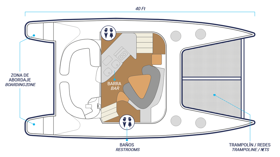 A fantastic catamaran perfect for medium-sized groups. Indulge in the cozy interior lounge, comfortable stern seats, and the exciting trampoline at the bow.